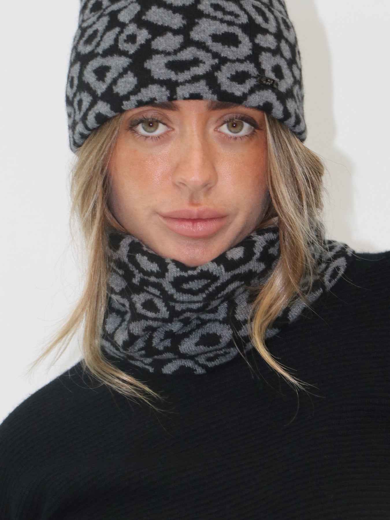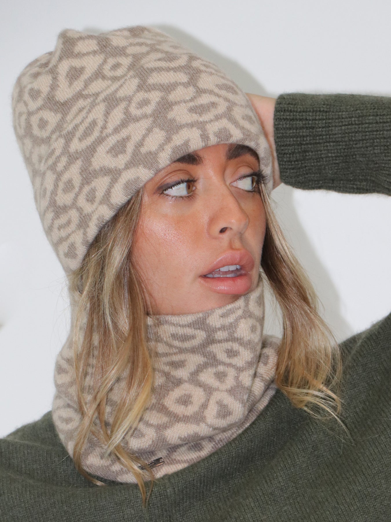Discover understated luxury with this exquisite leopard print neck gaiter, meticulously crafted from 100% sustainable Mongolian cashmere in a refined jacquard weave. The iconic spotted pattern brings subtle glamour to your neckline, while the sumptuous fiber ensures lasting warmth and a whisper-soft feel against the skin. Layer it with confidence as a versatile wardrobe essential, or complete the look by pairing with our matching LEOPARD BEANIE for an impeccably coordinated aesthetic. A timeless investment in refined elegance.