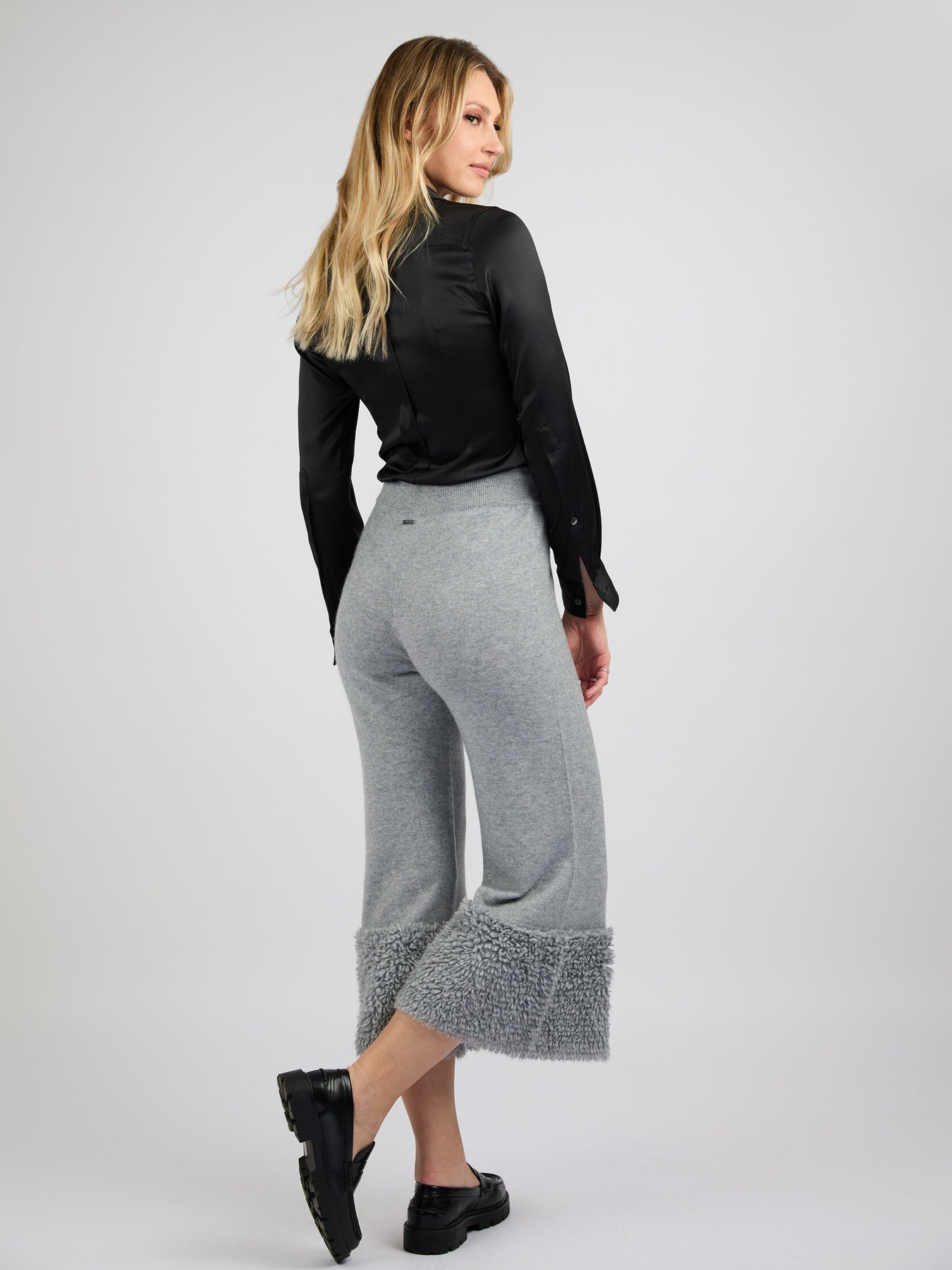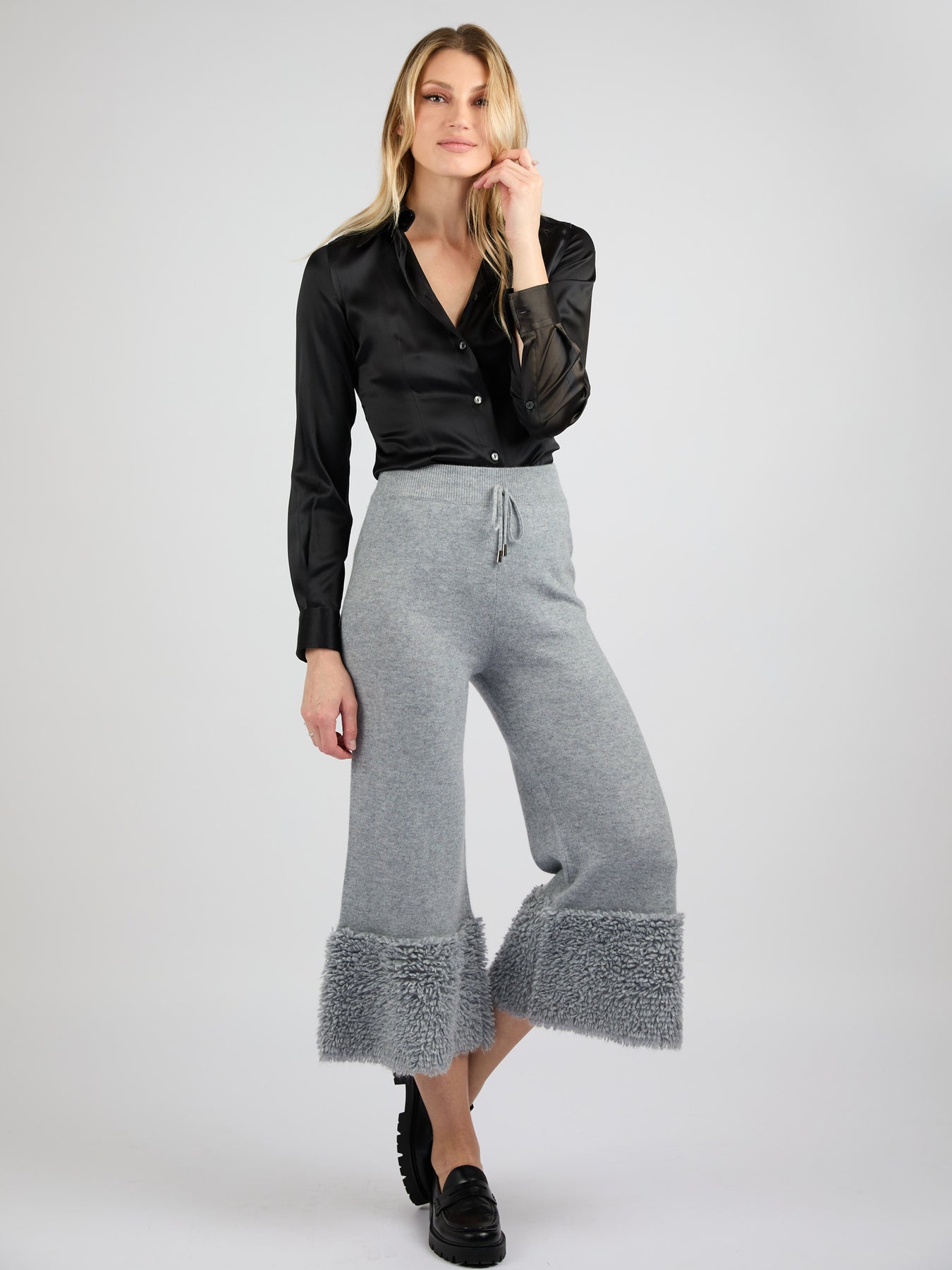 Meet MONT BLANC PANTS, crafted from 330 grams of luxurious Mongolian cashmere in a refined 12-gauge, 1-ply knit. These cropped wide-leg pants feature an elastic waistband with adjustable drawstrings for a perfect fit. The loop stitch detail at the hem adds a plush, textured finish, offering both comfort and sophistication. Perfectly paired with the MONT BLANC COAT or worn alone, these pants bring understated elegance to any ensemble.