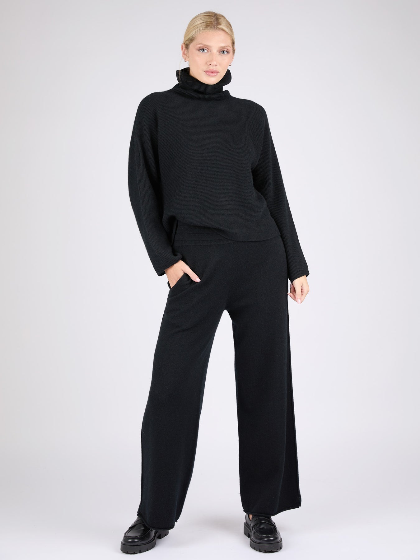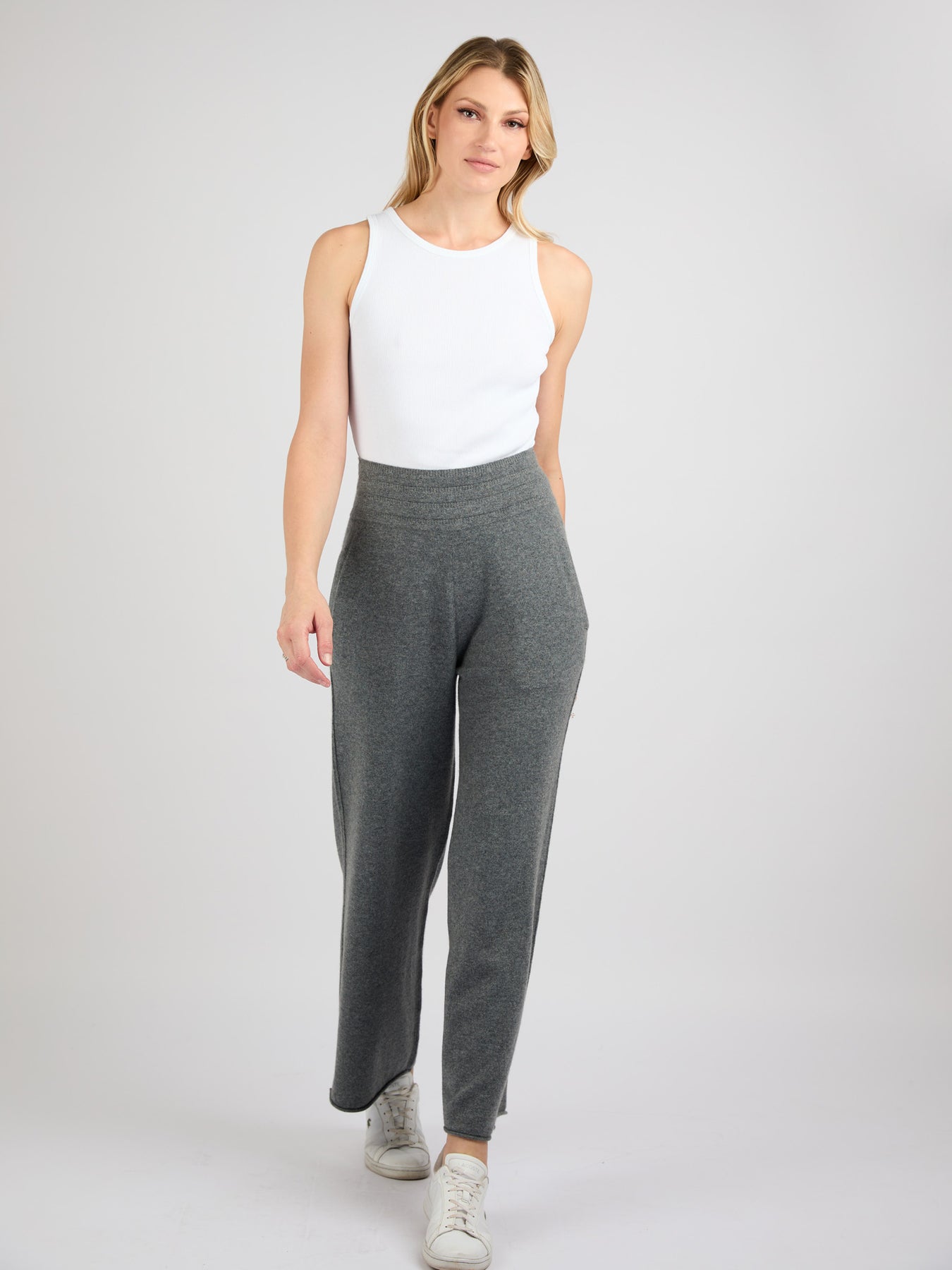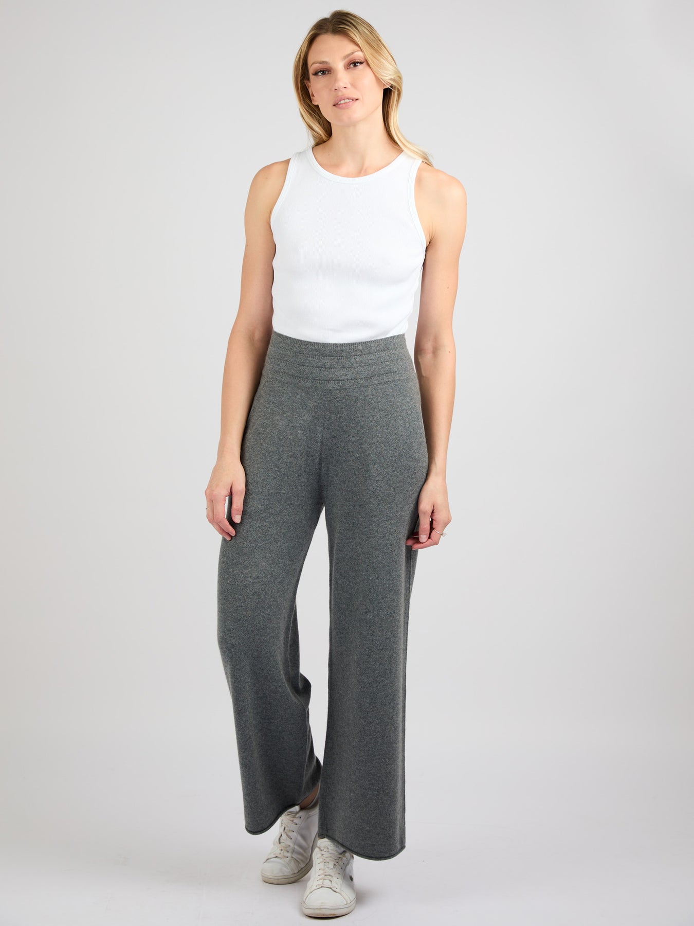 Experience unmatched elegance with the HAKUBA PANTS, crafted from luxurious 100% Mongolian cashmere weighing 360 grams in a 12-gauge 1-ply knit. These wide-leg pants feature a stretch ribbed high waist for a flattering fit, complemented by slit side pockets for subtle practicality. Their flowy silhouette drapes effortlessly, combining comfort with refined sophistication for any wardrobe.