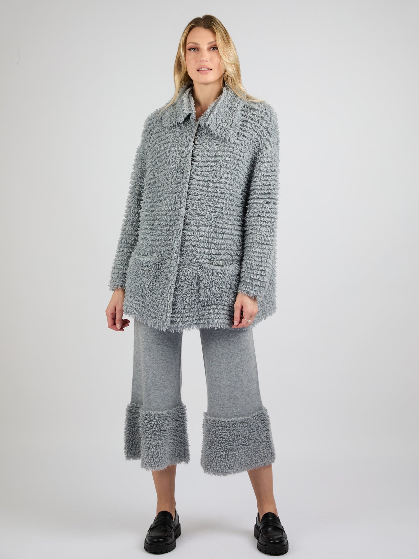 Modern Coat Knitted in Cashmere with a textured fur effect